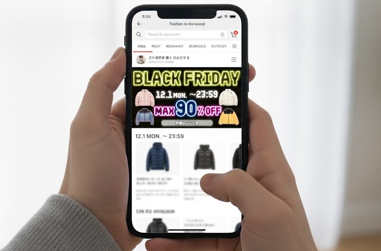 ブラックフライデーセールをテーマに、すごく安くなっていることを強調するため90%オフの数字を目立たせました。また、みんなが思うブラックフライデー(黒字に金や黄色の光る文字)のデザインを表現するため、ネオン効果を文字に持たせました。具体的な商品を何個か掲載することで、狭いバナーの限られたスペースでも、見る人の興味を引くことができるよう工夫しました。